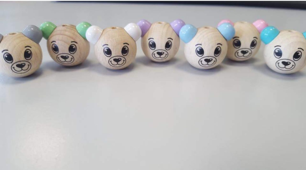 Dieses Produkt ist zur Herstellung von Schnullerketten, Kinderwagenketten und Mobiles für Säuglinge konzipiert.